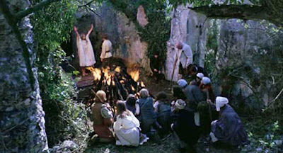 "Scarce above four feet stood the tallest, and they were small of build and very dark of complexion. Their eyes were black; and most of them went stooped forward, as if from a lifetime spent in crouching and hiding; peering furtively on all sides. They were armed with small bows, arrows, spears and daggers, all pointed, not with crudely worked bronze but with flint and obsidian, of the finest workmanship. They were dressed in finely dressed hides of rabbits and other small animals, and a kind of coarse cloth; and many were tattooed from head to foot in ocher and woad"Hill-Men: Again speaking of Picts, in either Howards frontier stories or some of his other Pictish yarns where their degeneration is more sinister (after Machen) and less sad, the Hill-Men can be those sort of Picts. A little degeneration won't hurt. They're really likely to be those cultists mentioned above, too.