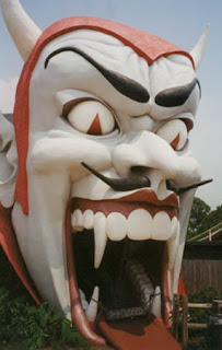 Hell’s most famous entrance (though there are rumored to be many) is located in a lonely ruin near the sea. It’s accessible through a door in the mouth of statue of a giant head. Near the head is a runic legend that resists translation: “D NTE’ NFEFNO-L N !” The head’s leering and horned visage is said to be in the likeness of Hell’s sardonic ruler. He names himself Mephisto (though he has other names) and appears as a Man of ancient times, save for the small horns on his brow and the ever present flicker of flame in his eyes.