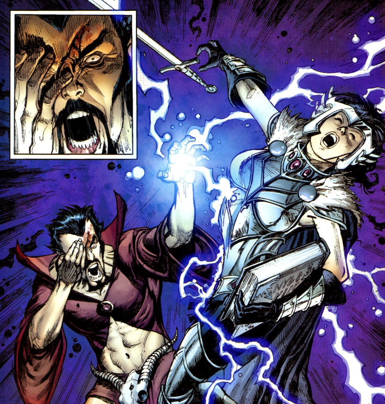 Suddenly, a bright blue light flares from a nearby tower. Morgan and McBane rush in and find Jennifer in the clutches of some hydra-type creature made of energy. The two manage to free her and Jennifer unleashes a spell that banishes the monster. Morgan knows who it is immediately: Deimos. Jennifer confirms his aura was all over it--and it was stronger than ever.
