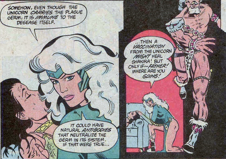 Norrad slew the attackers, but was himself fatally wounded. As he was dying, he dictated a prophecy concerning his winged helmet. It would leave New Atlantis but would someday return—and herald a final doom for Atlantis’ evil. Norrad’s wife and the scribe who wrote down the prophecy fled the colony as soon as he died. Those loyal to him either fled or became victims of Ar-Diamphos’s experiments. The prophecy didn’t stay hidden from Ar-Daimphos for long: