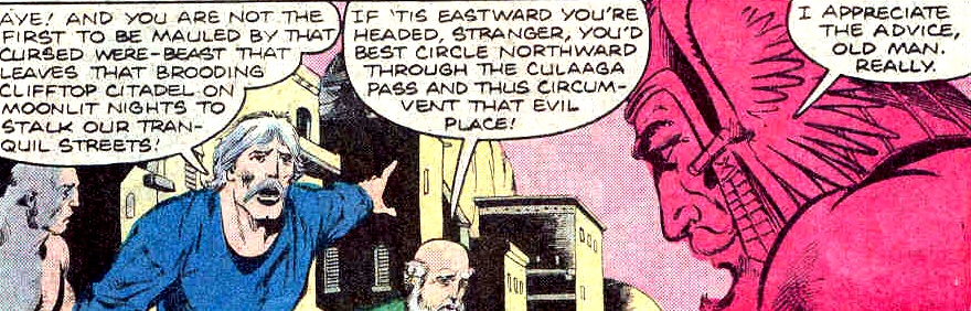 The portrayal of Graemore in this issue (and indeed in the Burkett run that proceeded it) makes him a sensitive minstrel type. In his early appearances, he was more of a man of action.
