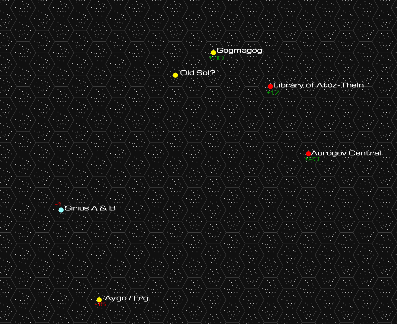 The map uses the names travelers would most likely use. Some are a planet (Gogmagog) or station (Aurogov or the Library), and others are legitimately the star pictured (Sirius). Many of the star names we use today will be lost by that time, though Eridanus (our 82 Eridani), the primary of Aygo of the zhmun, and Sirius (lair of the ssraad) endure.