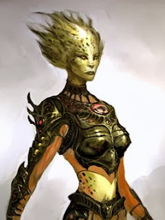 History: The vokun species emerged from a hostile, predator-filled environment, where tribal groups competed fiercely for resources. Eventually, groups of allied elders were able to extend their pheromonal influence over progressively larger bands of youths until more stable societies were established.