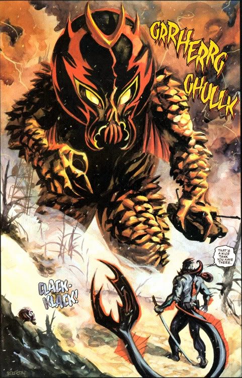 - None of the Warlord regular cast appear in this issue except in flashback.