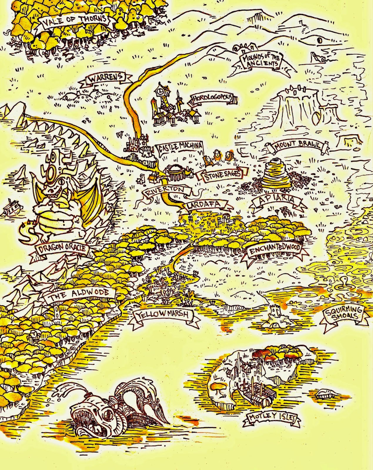 The next morning, they take the ferry over to Mechanicstown, the collection of laboratories around Castle Machina. The gnome guards usher them into the audience chamber, where a pre-occupied Princess soon enters. She agrees to help them with their various requests, but asks them to perform a simple task for her first: take a small velvet bag to a man in the third level beneath the castle. She shows them on a map where to go but warns them against going any place else, lest they run afoul of the tribes of Looms. None of them known what Looms are, but they are assumed to be quite dangerous based on the context.