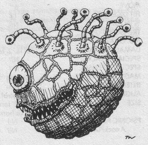 There is a strange kingdom in Subazurth called Beautia. The folk of the kingdom are human, but its ruler is the Beholder, an exceedingly unhappy alien monster, stranded in this world. The Beholder is first and foremost an aesthete, and its deep melancholy arises from the ugliness it perceives in the world around it. How it misses the natural beauty of its homeworld: the sharp dimpling of the pools of bilious ooze by the fierce shard-rains, the moans of the pungent flesh-stalks as the writhing, pulsating grub-parasites suckle at their ichor.