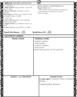 A couple of people asked if I was going to release a blank version of the B/X-ish 5e record sheet I'm using for the Mortzengersturm pregens. I hadn't thought about it before, but I seems like a good idea. A proper pdf will arrive at some point, but here's the front and back with the Mortzengersturm elements removed.