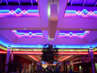 Megacorporations helped America (the world actually) out of those crisis with a leveraged buyout--a sponsorship. The Soviet Union was bought out, too, only over there in USSRtm, they offer consumers a planned community with a "Golden Age of Communism" theme. In the good ol' USA, some rednecks, religious cults, and survivalist nuts stick to the environmentally-damaged rural areas (think Mad Max meets Winter's Bone), and some wealthy folks can afford walled enclaves meant to replicate idyllic suburban life of the 20th Century with protection by real police, but most people huddle around the decaying industrial city cores in neon-lit arcologies that combine shopping and living in one. Malls.