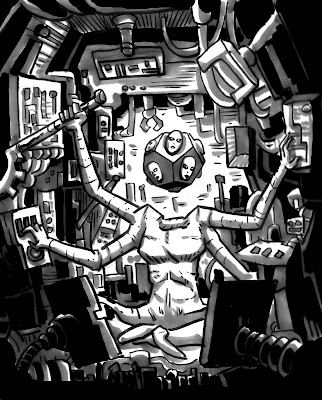As an example of the tone, one of my favorite bits is the Murder Machine race which is sort of like the Warforged with a bit of the Kuath from Strange Stars, but more metal than either of those things by at least seventy-five percent. The write-up is accompanied by an awesome Jeremy Duncan illustration that has a badass Ian Miller vibe.