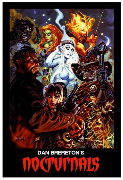 Nocturnals is a series of comic book limiteds and one-shots written and drawn by Dan Brereton. Its main characters are a vigilante team of--well, monsters--who tangle with gangsters, supernatural menaces, and an evil corporation that serves as a front for Lovecraftian invaders. If it sounds like role-playing game fodder, Green Ronin beat you to it with a 2004 sourcebook for Mutants & Masterminds. I also count the Nocturnals among the inspirations for my Strange New World of the City setting.