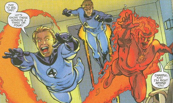 For the uninitiated, in the Marvel Universe, this means that the current “heroic era" never gets more than about 10-15 (depending on who you ask) years-old. The Fantastic Four originally got their powers in the sixties. In the Lost Generation limited series in 2000, that event seems to have occurred in the late eighties-early nineties; now, it probably happened around 2000.