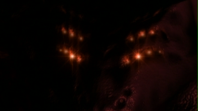 There is a shadow, think as velvet, along the ceiling, that slowly brings itself together like a snake coiling for a strike. The party doesn't notice at first. When the shadow has become a whispy sphere, and triangular eyes open in its void like malevolent stars, they do take notice! It tells them it has waited so long for someone to kill so it can be released from this prison of cold light and return to the embrace of the dark void.