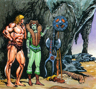 Spell Card! got me thinking about my love for Masters of the Universe. I don't mean the 80s cartoon with a Captain Marvel in purple tights and a Prince Valiant haircut, a cowardly